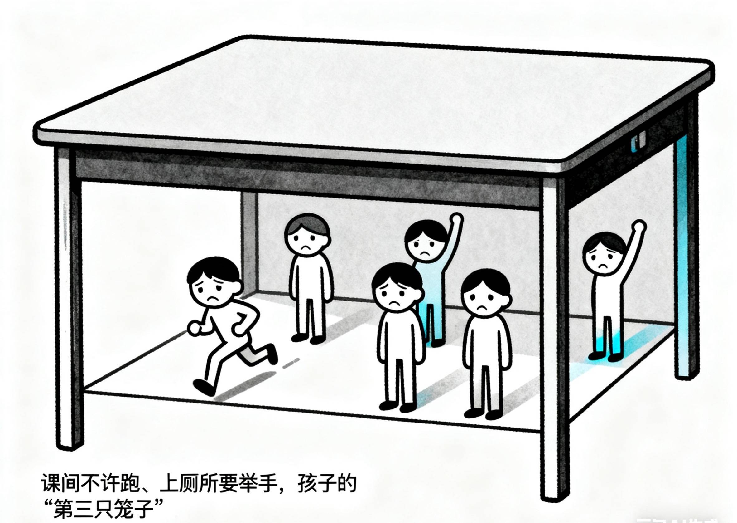 这让我想起心理学家康恩·贝尔提出的第三只笼子理论——当生存空间被过度限制时,生物会产生持续性的焦虑与压抑。而如今不少中小学里,孩子们的活动半径正被压缩成一张课桌的大小,他们的校园生活,似乎也悄悄住进了这样的笼子。