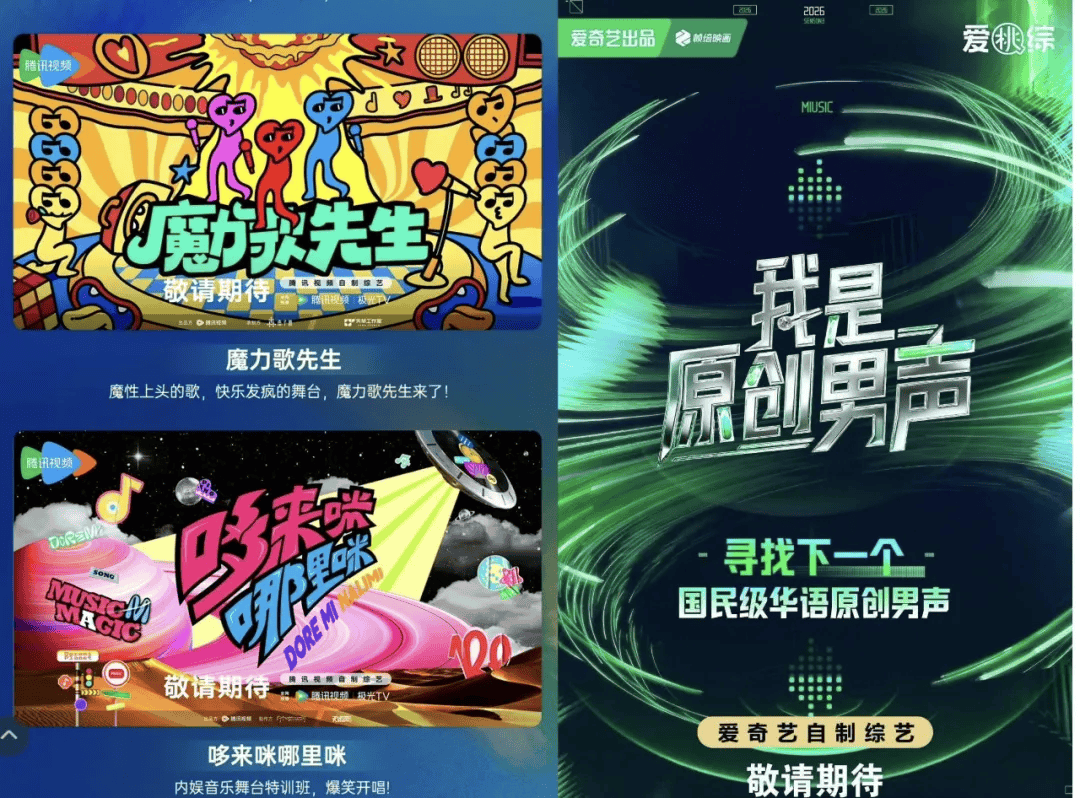 《我是原创男声》《超燃青春的合唱》《说唱巅峰对决2026》《超感星电音》《繁星少年音乐会》《魔力歌先生》等待播音乐综艺,或深耕垂类赛道,或融合多元元素,具体效果仍需时间与观众检验。
