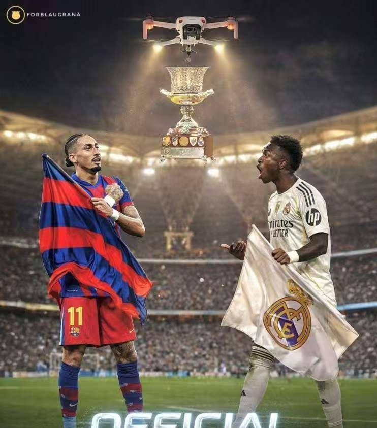 距离比赛开始还有一个小时,看台上已经变成了红蓝与纯白的海洋。巴萨球迷高举着“5比2永不忘”的标语,以此嘲讽皇马在上赛季西超杯决赛中的失利。皇马球迷则回应以巨型TIFO,上面写着“百年荣耀不死”,以此展现球队的辉煌历史和永不放弃的精神。在球员通道口,维尼修斯与亚马尔的击掌,短暂地缓和了场上紧张的气氛,但两人目光交汇的瞬间,依旧闪过一道寒光。