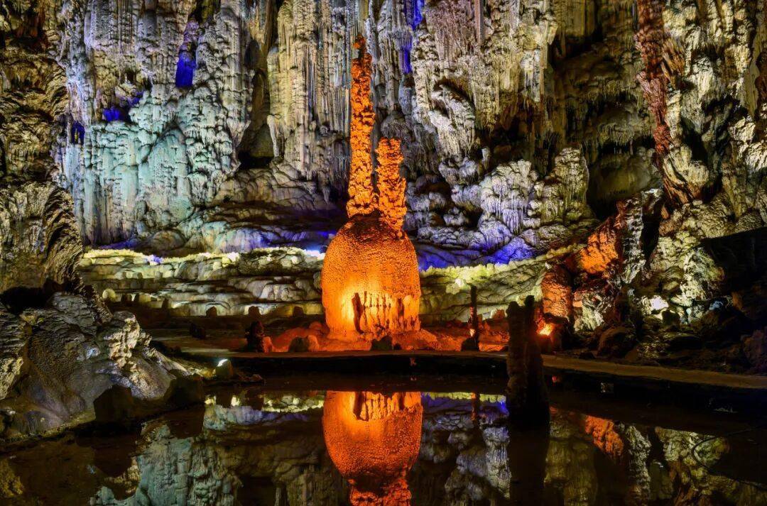 另一则关于“蛋”的神奇故事,则发生在铜仁市德江县的傩仙洞内。“不仅是孩子,大人看了也惊叹不可思议。”陈明华为大家耐心科普,钟乳石里含有硫或氢等杂质,形成了“蛋黄”,“蛋白”则是因为水体干净,钟乳石没有杂质。“贵州地貌多样,成因各异,每一类都与化学课或物理课有关。这些在课堂中生硬的公式,在自然界中真切体会、体验,会更加难忘。”在贵州省文化和旅游厅的驻地指导下,洋山河景区已开辟研学项目,在奇观中讲述“傩仙洞五彩河之谜”。
