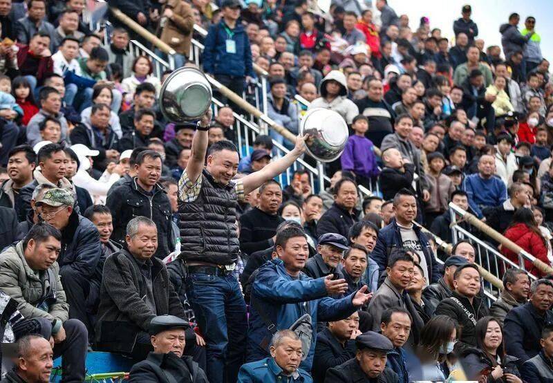 “村BA”现场一名观众敲着脸盆加油助威(新华社记者 刘续/摄)“大家凑钱买水、做饭,只为一场球。”丰乐社区党总支书记陈开华介绍,早在“村超”火爆之前,各个村寨之间就一直保持着踢交流赛的传统,陈开华还在村里组织了一支啦啦队。在最具烟火气的球场上,奔跑的球员可能是卖鱼商贩、外卖小哥,也可能是求学少年、乡村教师。中场休息时,各村啦啦队进场用民族歌舞表演加油助威,村民们拿着自家的水果、小吃进场“投喂”球员和游客。