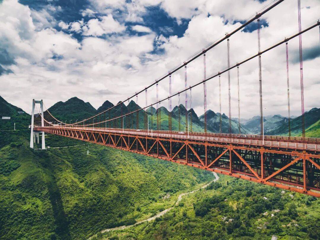 。从高山深切近600米的河谷,距谷底高达370米的橙红色桥面,还未进入,坝陵河大桥已以险峻傲然之姿,先给到访游客来了一点线年建成时成为“国内第一,世界第六”的大跨径钢桁梁悬索桥。贵州人如何硬生生把路架到了云端?