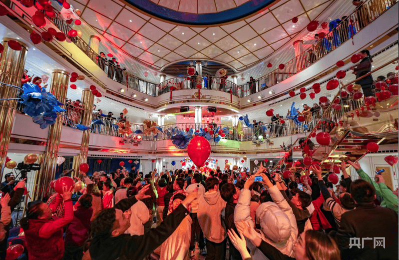 邮轮已装点节日盛装,红灯笼、中国结及各类新春主题装置遍布全船。船上精心筹备了多款寓意吉祥的海上年夜饭及新春主题套餐,让游客在海上也能品尝到家的味道。